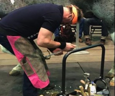 The original pink apron Billy wore during the live shoeing in Reno will be signed by farriers of Billy’s choosing. It will then be donated to the AFA auction in Tulsa where the proceeds will be donated to the American Farrier’s Team.